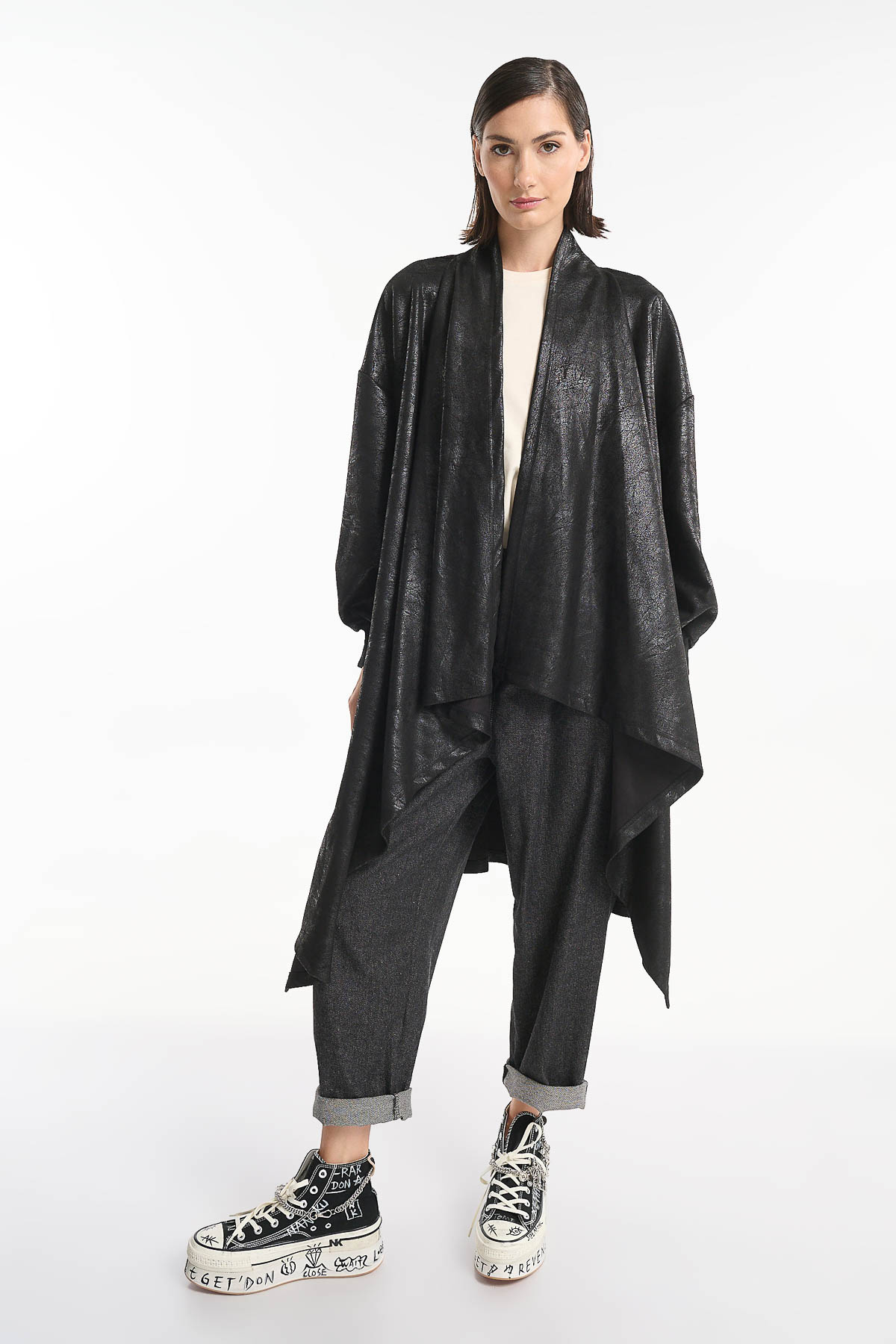 Cardigan eco leather Μαύρο