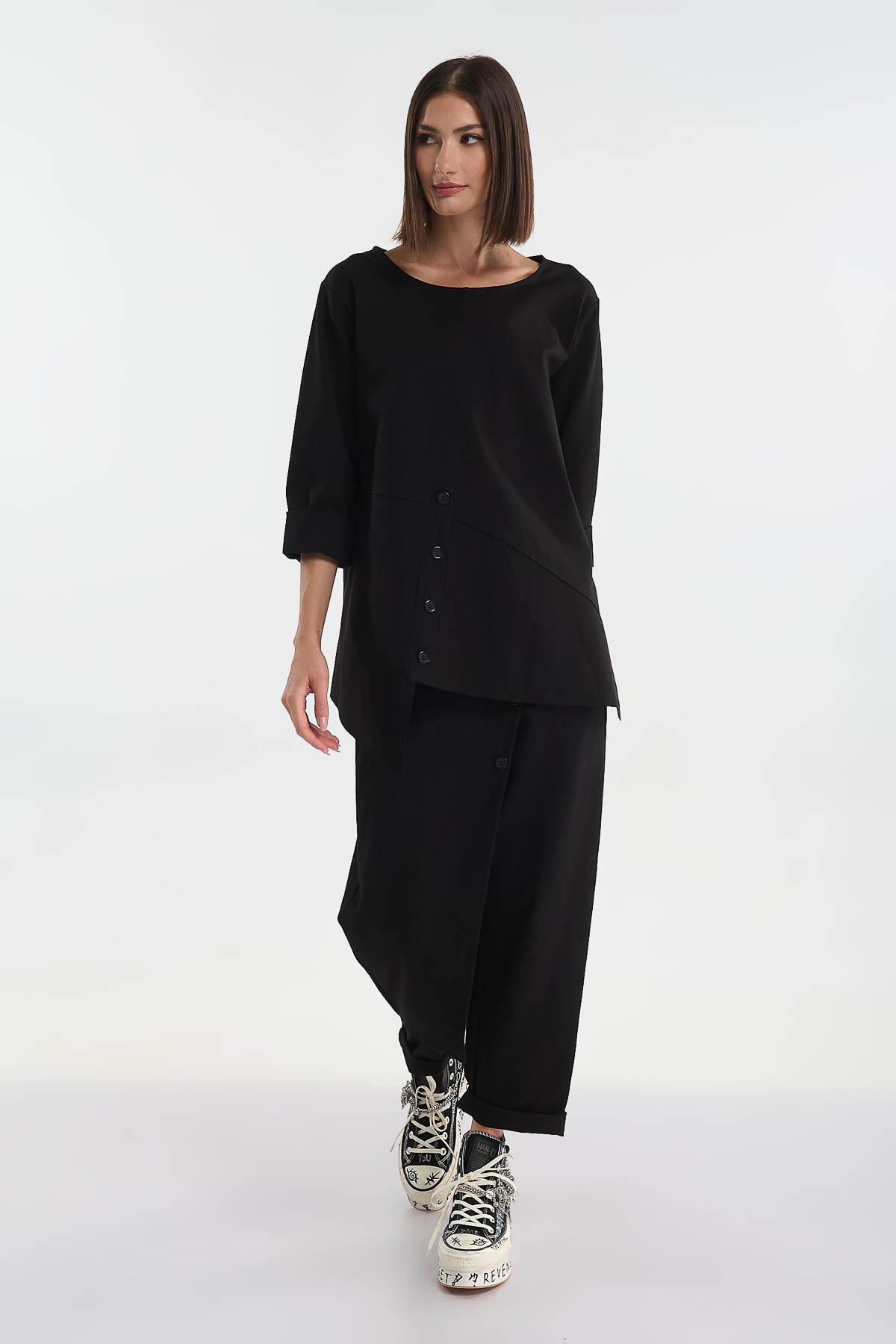 Μπλούζα ασύμμετρη κουμπιά μπροστά Μαύρο