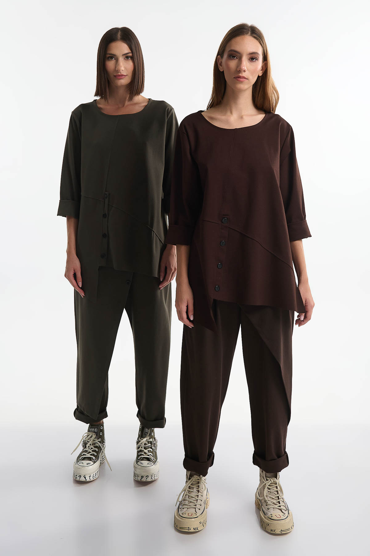 Μπλούζα ασύμμετρη κουμπιά μπροστά Χακί