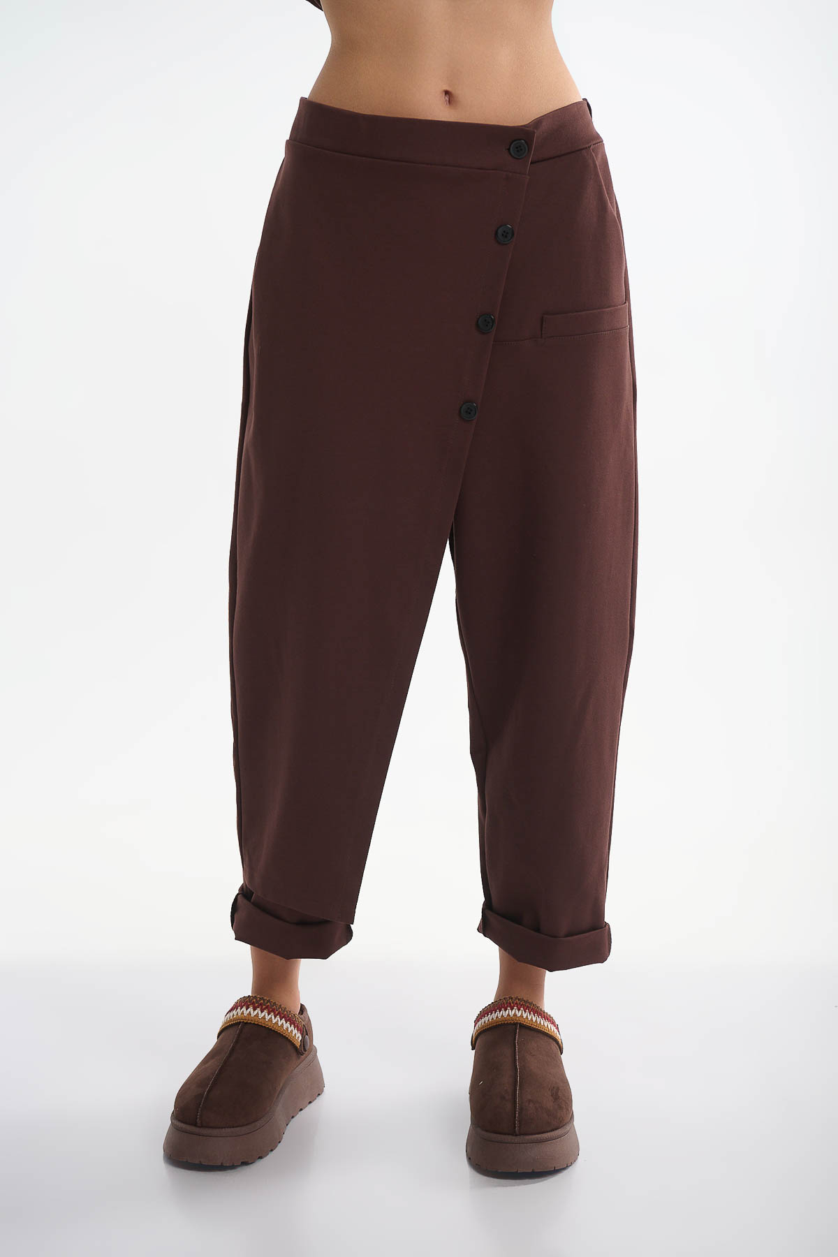 Παντελόνα φάκελος με κουμπιά Καφέ
