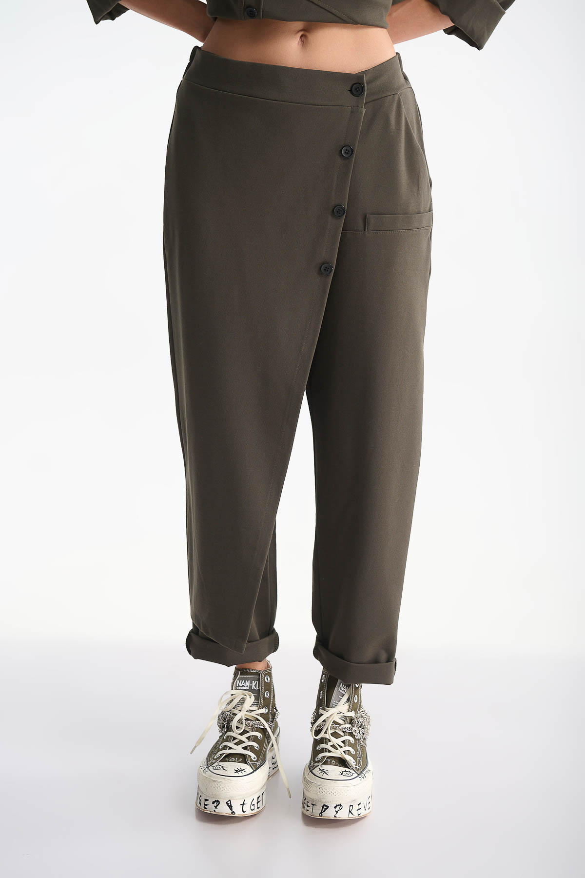 Παντελόνα φάκελος με κουμπιά Χακί