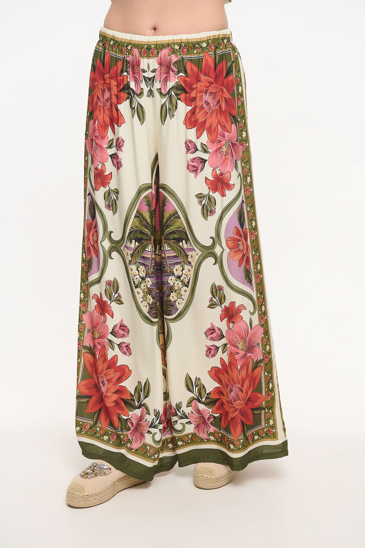 Παντελόνα με print floral Εκρού