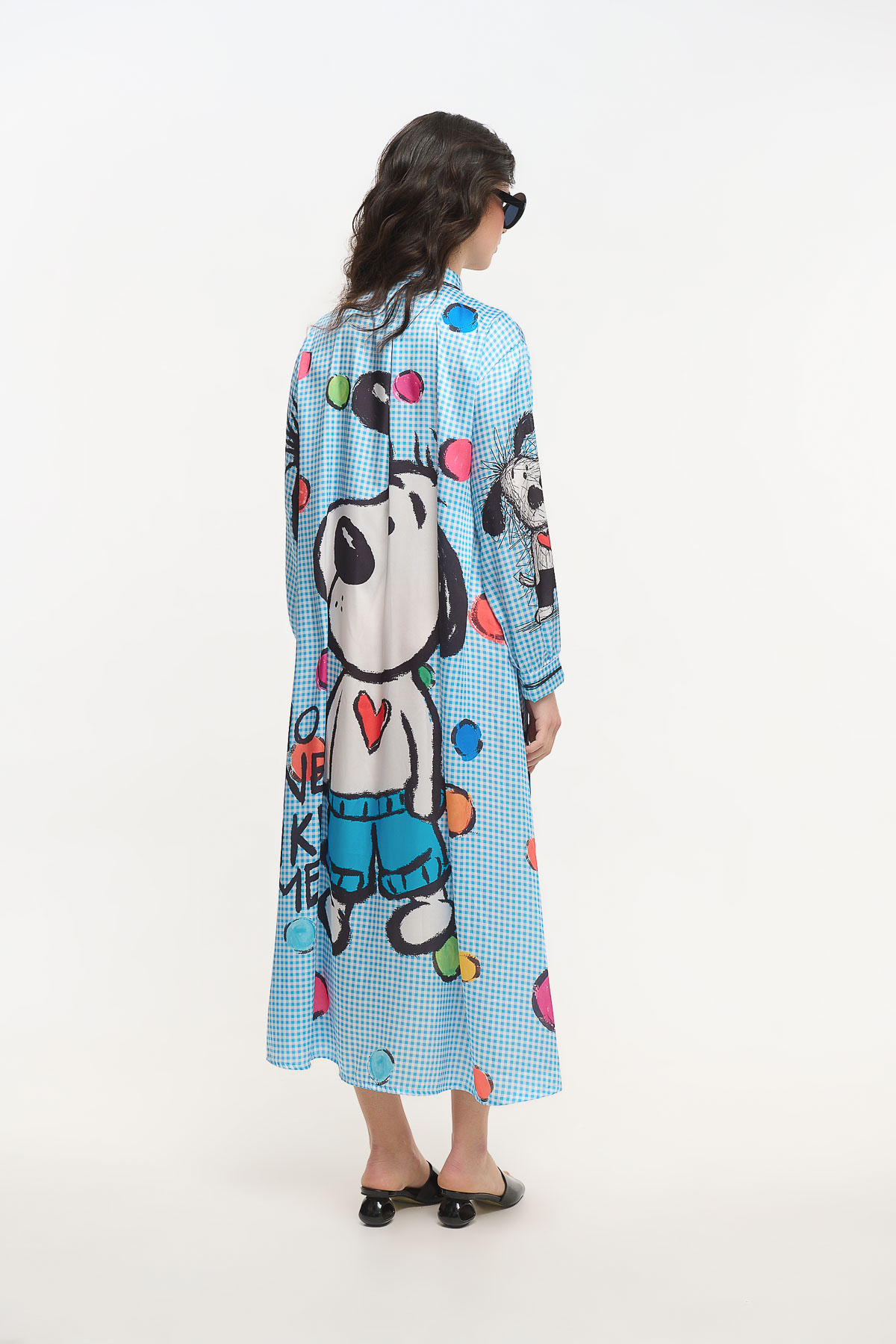 Φόρεμα maxi με Snoopy print και καρό μοτίβο