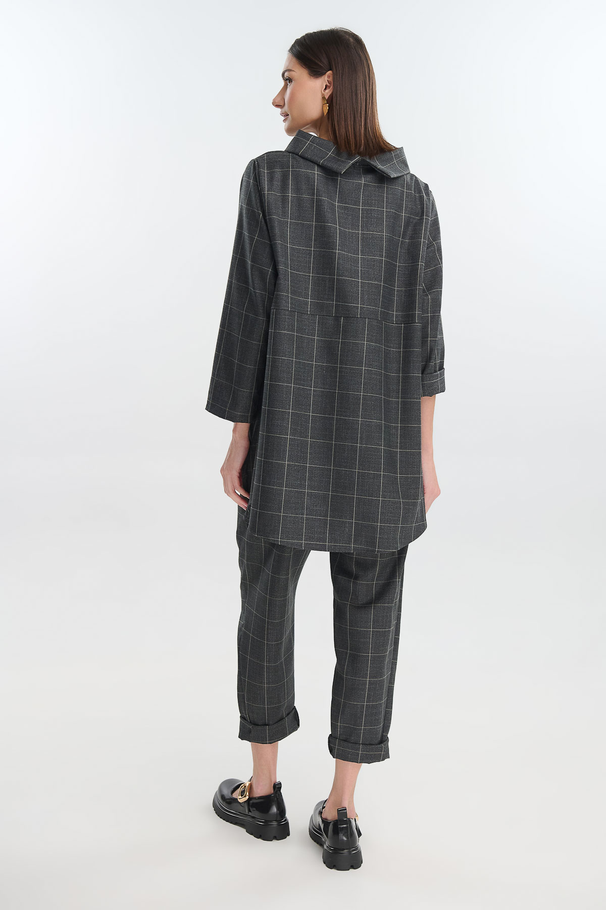 Η καρό ασύμμετρη μπλούζα της ΑΝΕΜΗ συνδυάζει τη διαχρονική κομψότητα με τον μοντέρνο σχεδιασμό. Διαθέτει ιδιαίτερο γιακά που αγκαλιάζει απαλά τον λαιμό, φαρδιά γραμμή που προσφέρει άνεση και στυλ, καθώς και ασύμμετρο τελείωμα που χαρίζει κίνηση και χαρακτήρα σε κάθε εμφάνιση.
