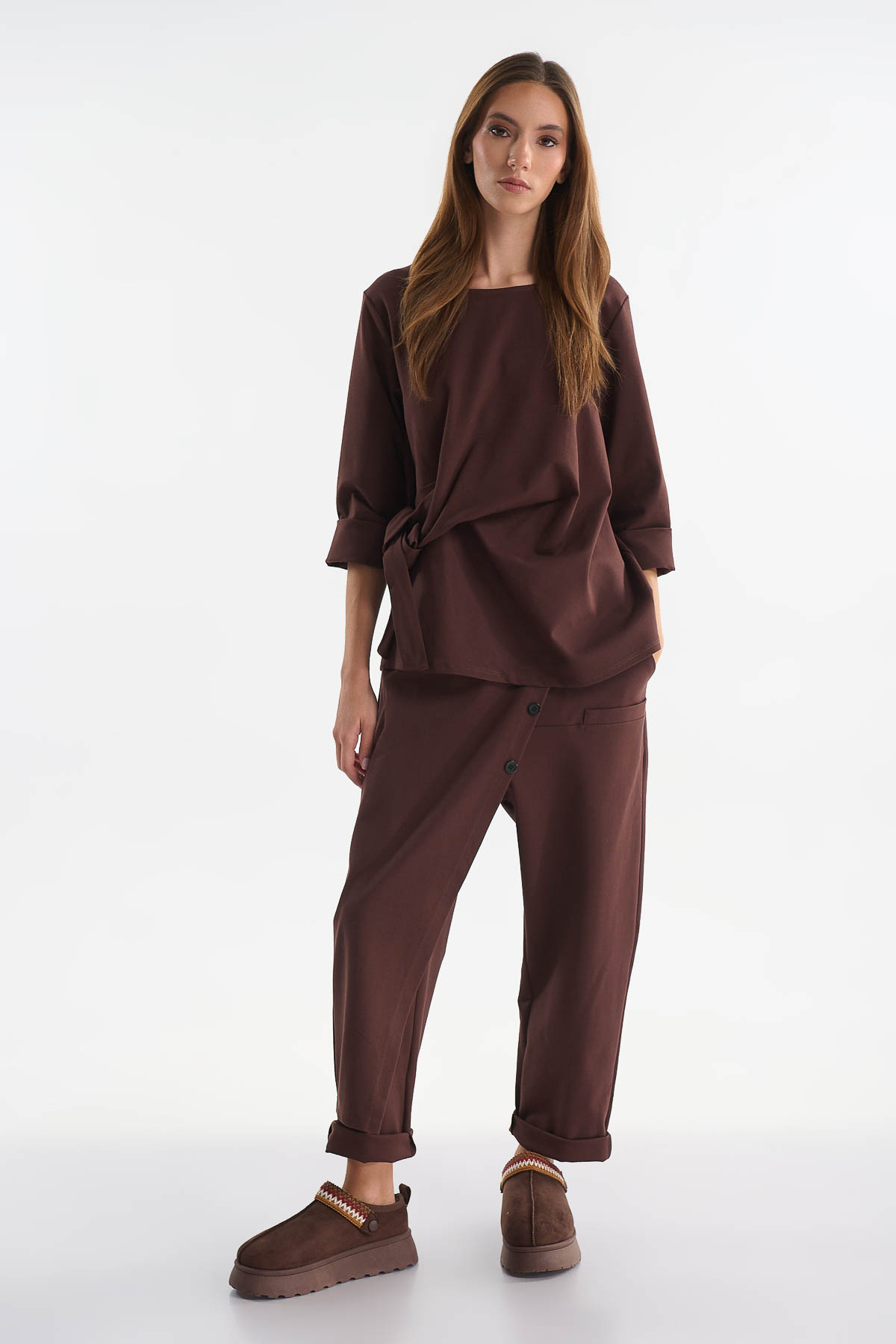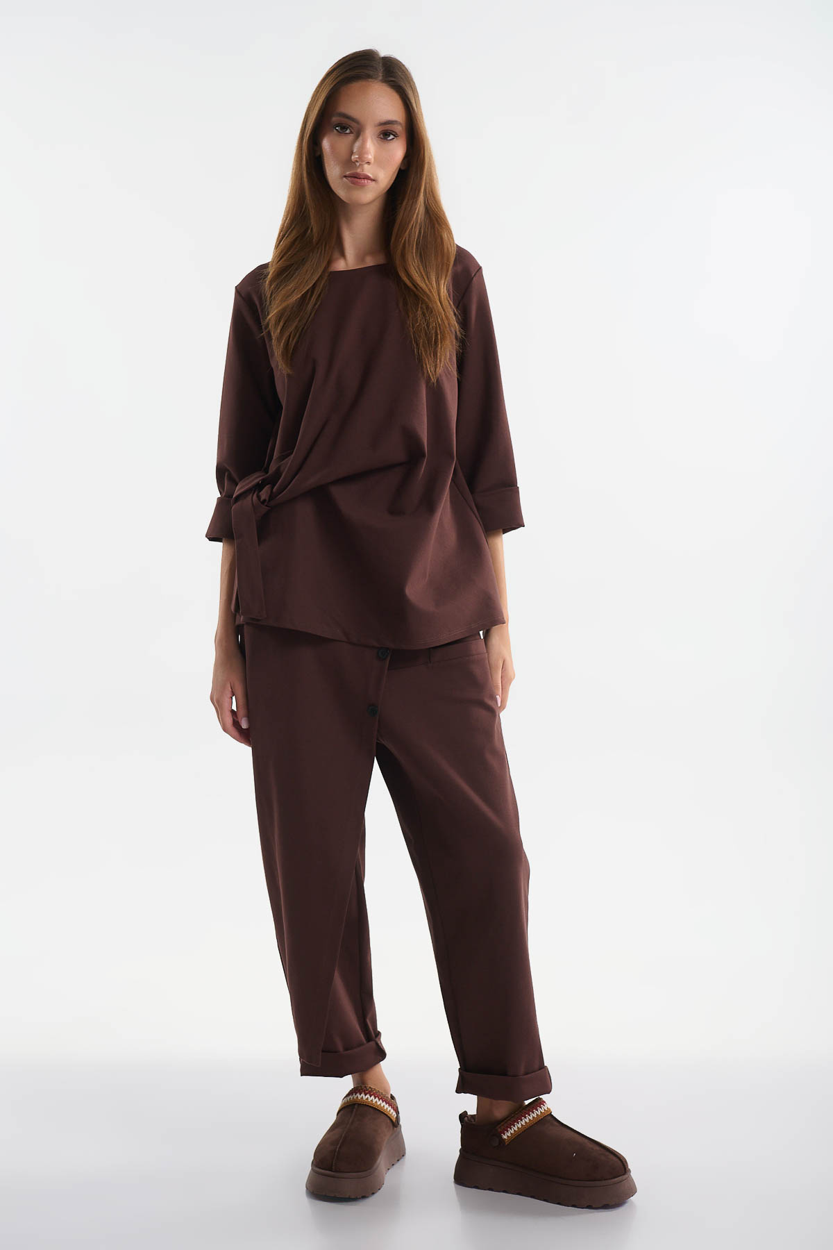 Ανανεώστε το καθημερινό σας look με αυτή τη minimal chic μπλούζα. Διαθέτει κομψό δέσιμο στο πλάι που χαρίζει στυλ και κολακεύει τη σιλουέτα. Με μακρύ μανίκι και ελαφρώς χαλαρή γραμμή, συνδυάζεται εύκολα με παντελόνες ή τζιν, δημιουργώντας σύγχρονες και θηλυκές εμφανίσεις.