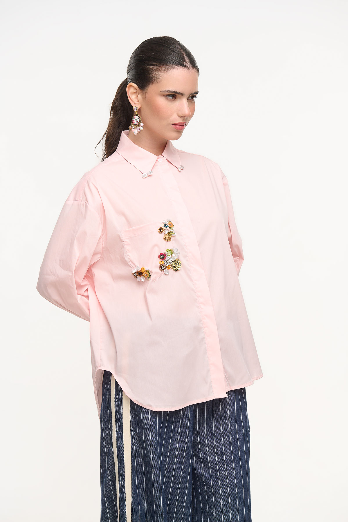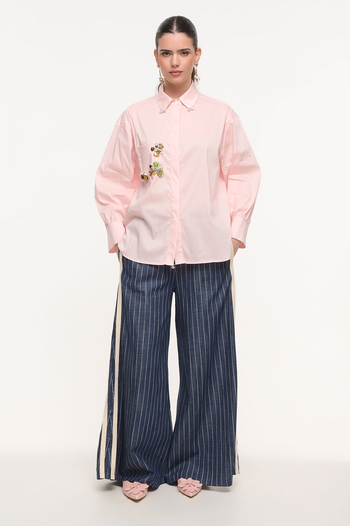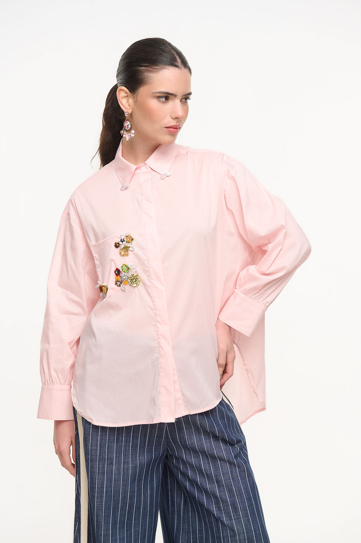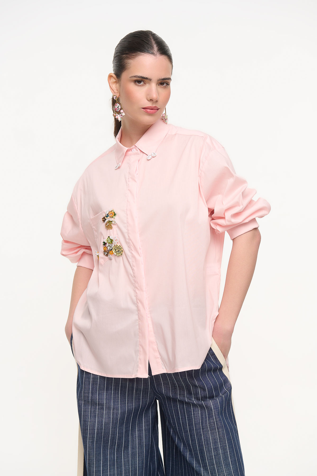 Πουκάμισο cotton με λεπτομέρειες κέντημα