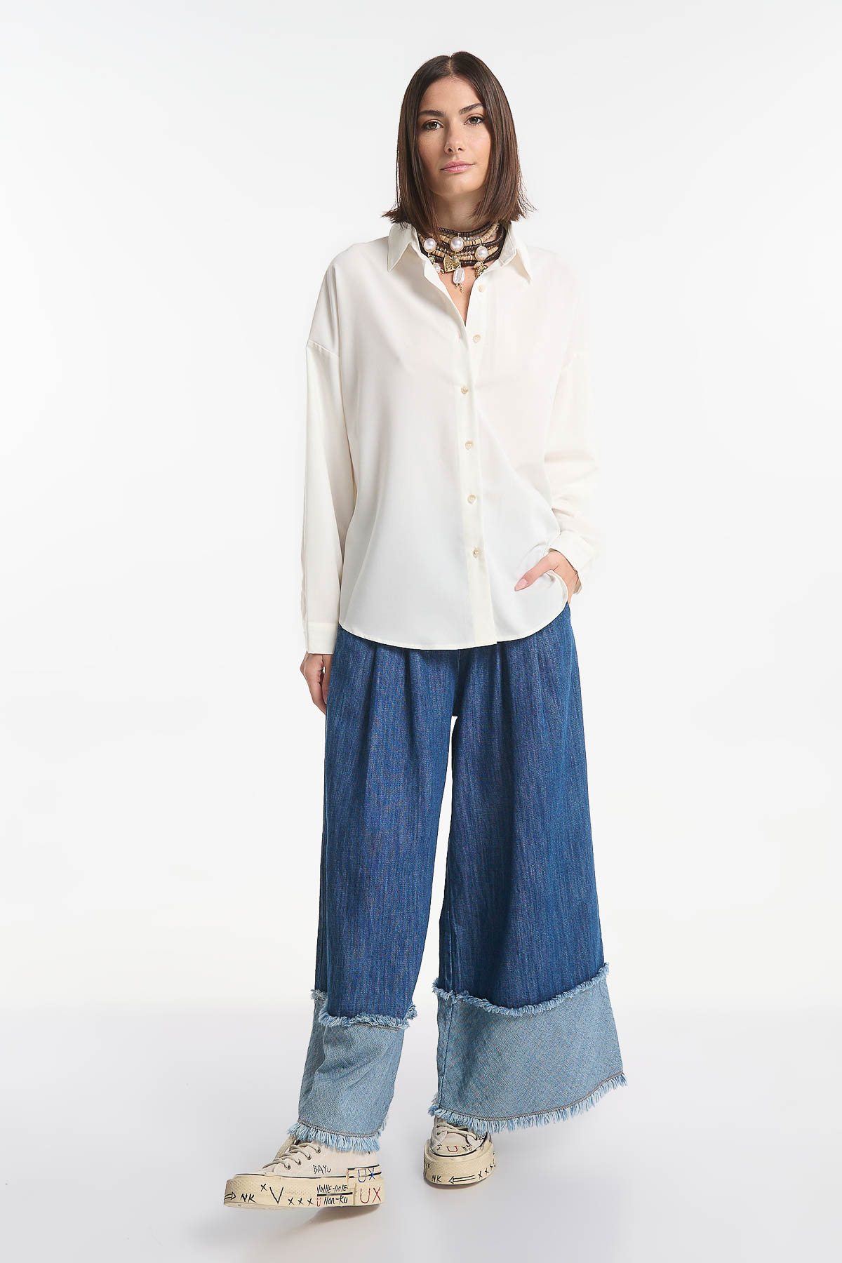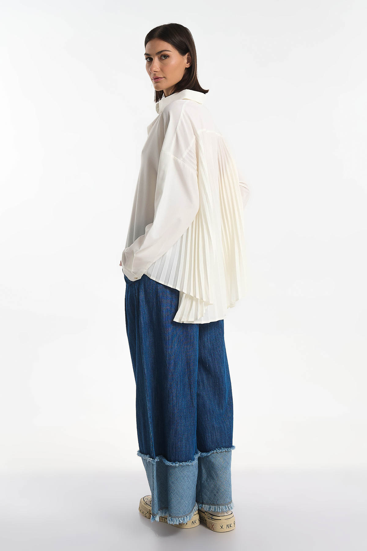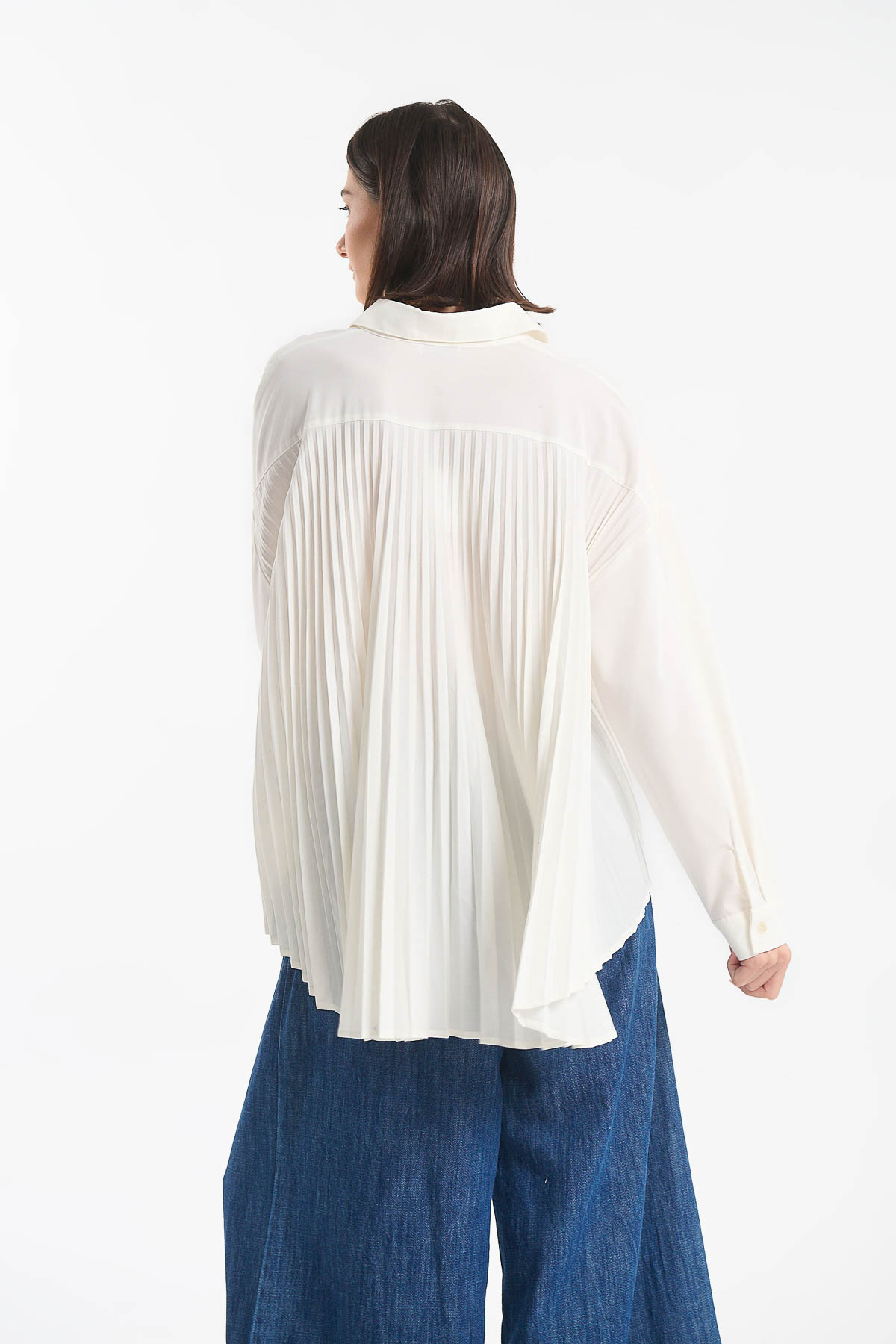 Αναδείξτε το στυλ σας με αυτό το μοναδικό λευκό πουκάμισο. Διαθέτει κομψό γιακά, κουμπιά μπροστά και εντυπωσιακή πλισέ λεπτομέρεια στο πίσω μέρος που του δίνει κίνηση και ασυμμετρία. Η loose γραμμή του προσφέρει άνεση, ενώ το ιδιαίτερο design το κάνει ιδανικό τόσο για καθημερινές εμφανίσεις όσο και για πιο chic περιστάσεις. Είναι one size και καλύπτει απο XS έως XL . Καλύπτει στήθος έως 130 cm . Μήκος : 70 cm μπροστά – 82 cm πίσω . Σύνθεση : 60% Polyester – 40% Viscose .