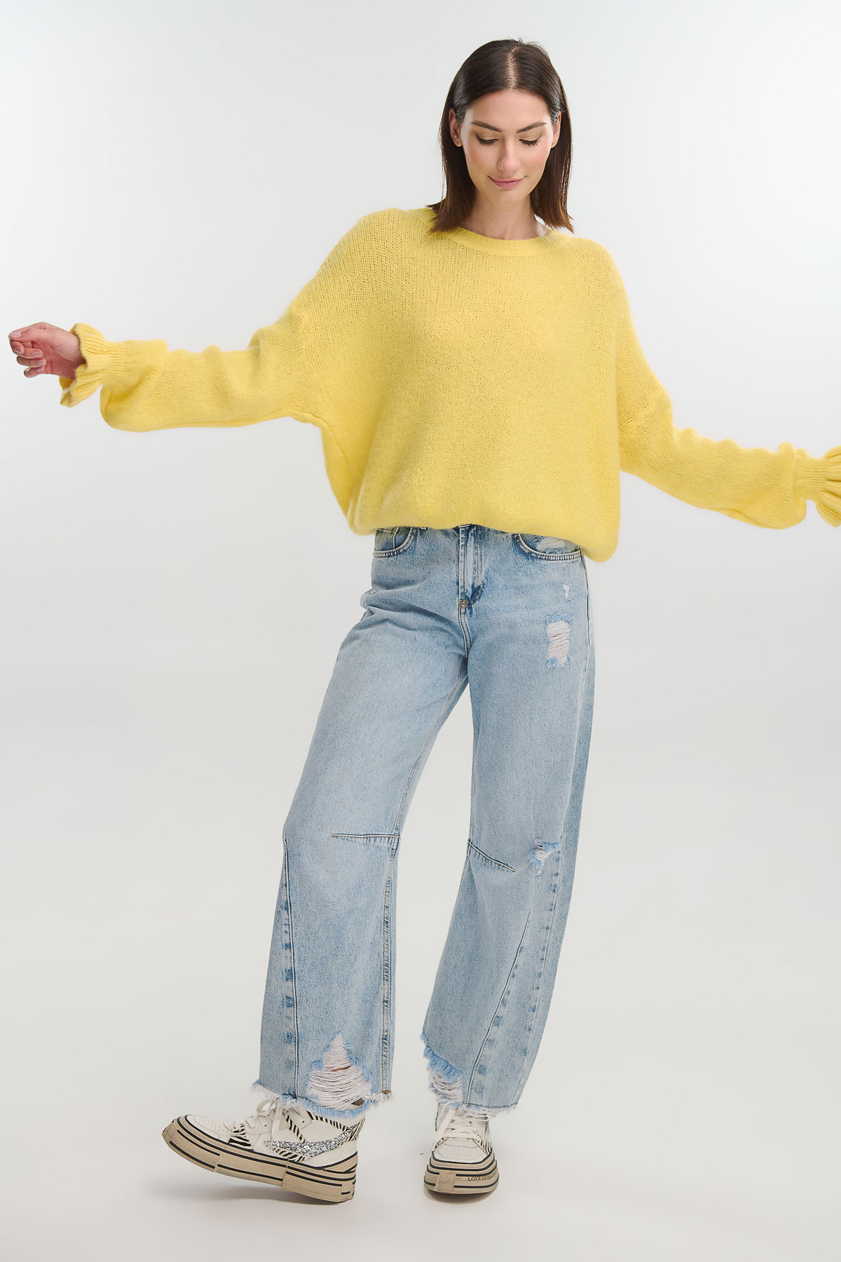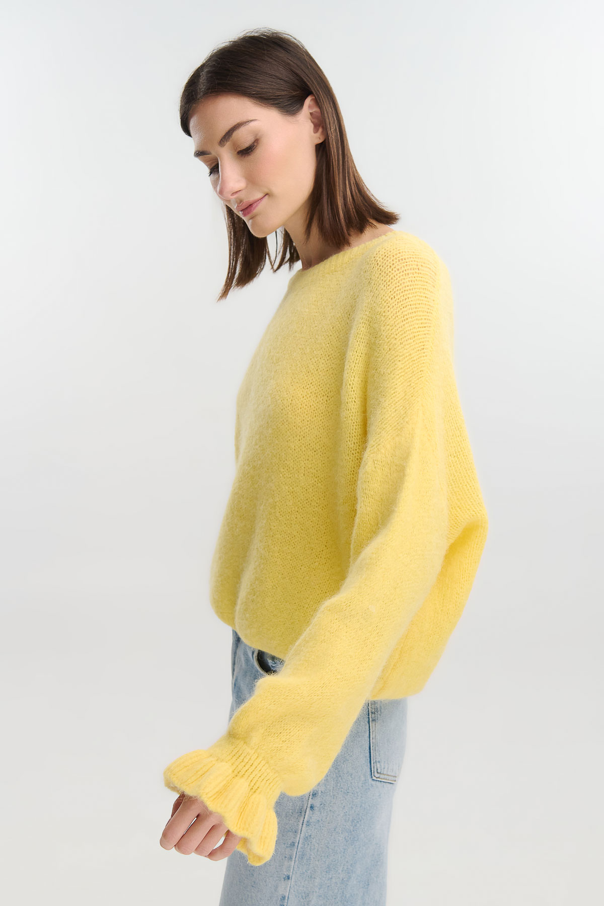 Οι μανσέτες διαθέτουν διακριτικά βολάν για ένα θηλυκό twist που ανανεώνει το κλασικό πλεκτό. Ιδανικό για καθημερινές εμφανίσεις με τζιν ή για πιο chic layered looks με φούστες και πουκάμισα.