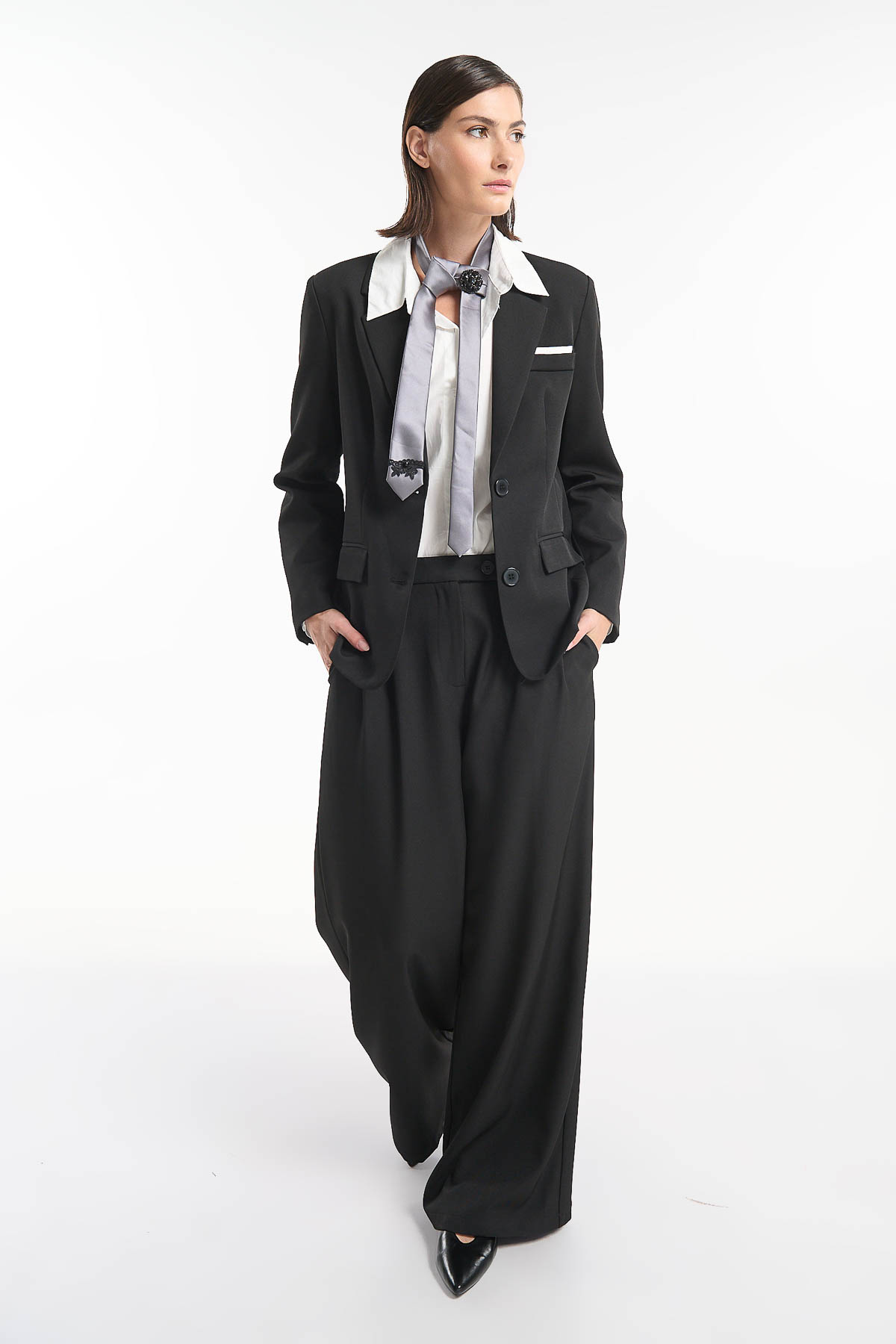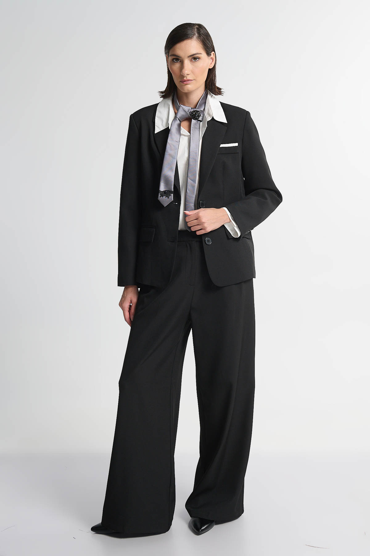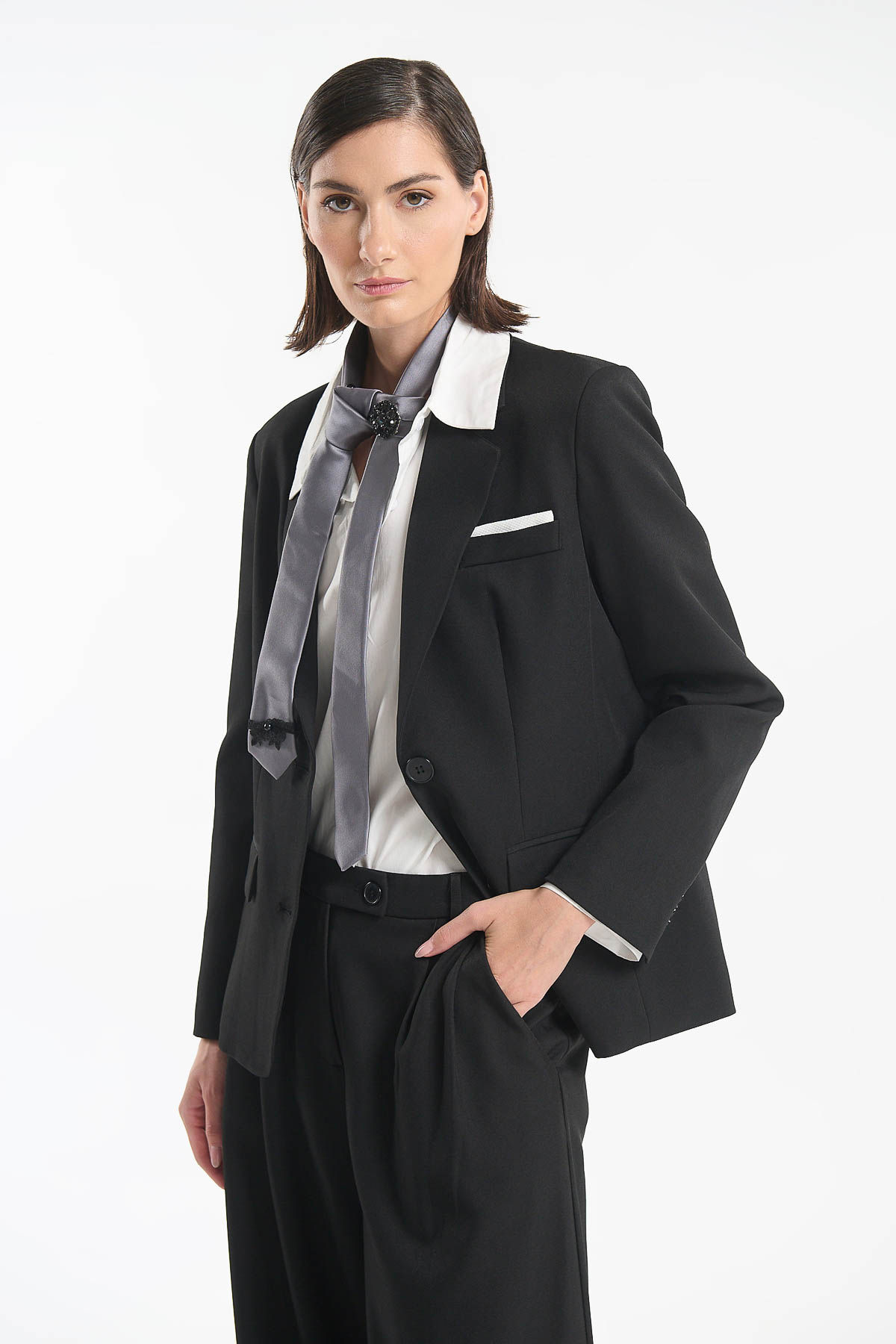 Αναβάθμισε το στυλ σου με το blazer “Power Chic”. Ένα κομμάτι που αποπνέει δυναμισμό και κομψότητα, με καθαρές γραμμές και τέλεια εφαρμογή. Ιδανικό για office looks αλλά και για βραδινές εμφανίσεις, αυτό το σακάκι μπορεί να συνδυαστεί με την αντίστοιχη παντελόνα για ένα ολοκληρωμένο, statement σύνολο. Διαθέτει εσωτερική επένδυση φόδρας , άψογη ραφή , κουμπία κλείσιμο μπροστά και στις μανσέτες . Το μοντέλο φοράει μέγεθος S . Σύνθεση : 95% Polyester – 5% Elasthan.