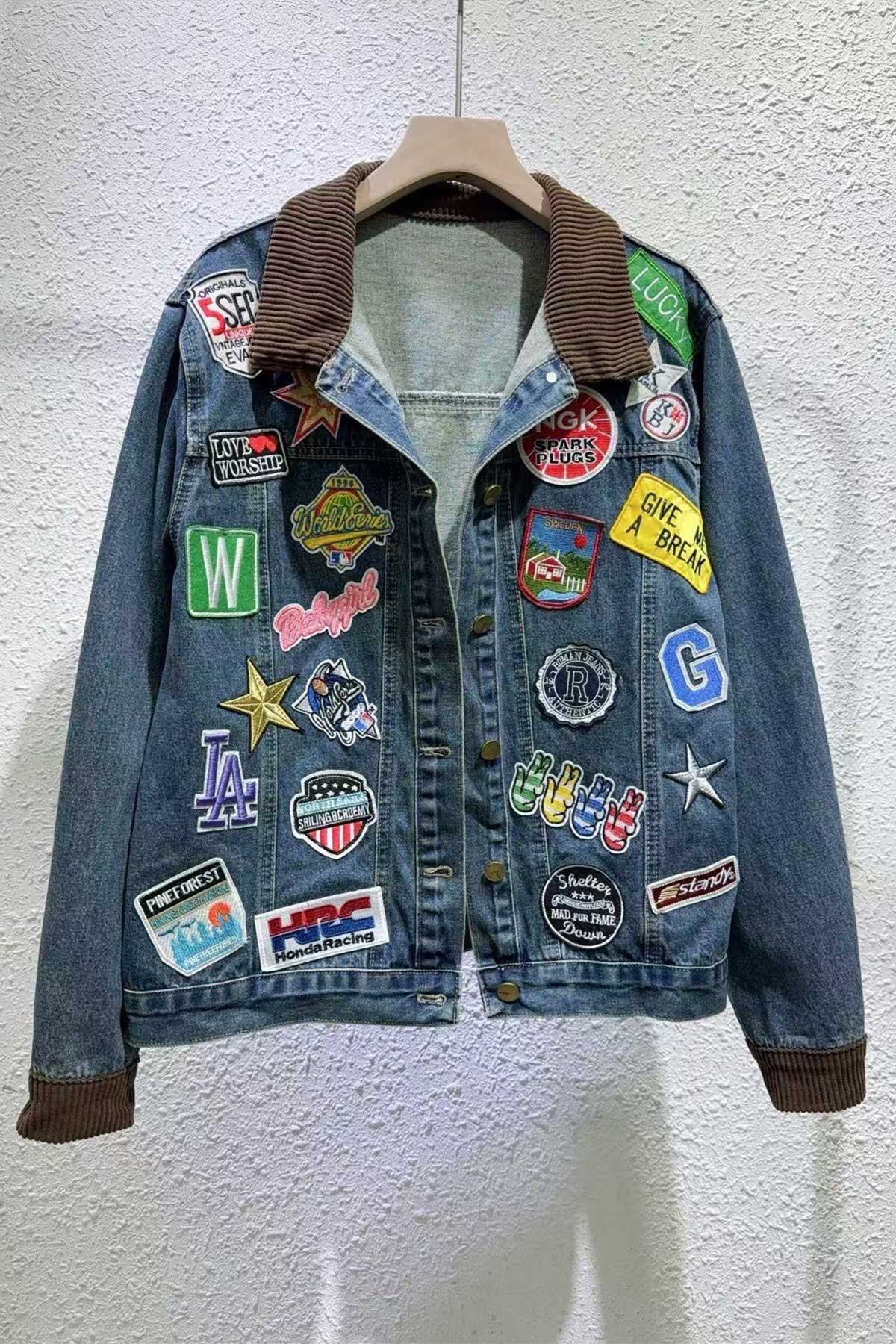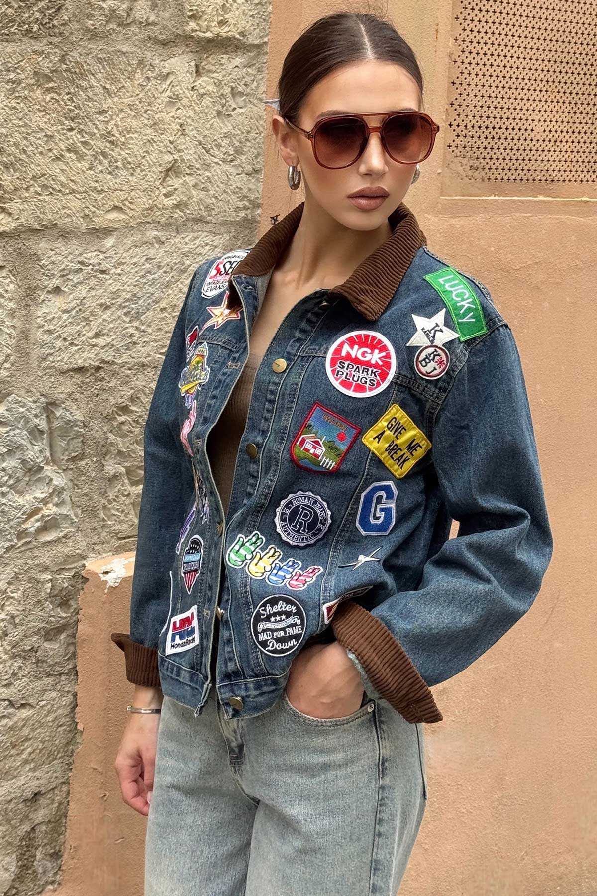 Το απόλυτο statement κομμάτι της σεζόν! Το denim jacket με patches φέρνει έναν αέρα streetwear και μοναδικότητας σε κάθε εμφάνιση. Διακοσμημένο με έντονα κεντημένα σήματα σε διάφορα σχέδια και χρώματα, συνδυάζει την κλασική γραμμή του τζιν μπουφάν με ένα παιχνιδιάρικο και edgy twist.Η λεπτομέρεια στον γιακά με καφέ κοτλέ ύφασμα προσθέτει vintage διάσταση, ενώ τα πολύχρωμα patches απογειώνουν το casual look. Φόρεσέ το με τζιν ή cargo παντελόνι για απόλυτο urban style, ή συνδύασέ το με φορέματα για ένα πιο εναλλακτικό και fashion-forward αποτέλεσμα. Σύνθεση : 95% Cotton – 5% Polyester. Μήκος : 62 cm .