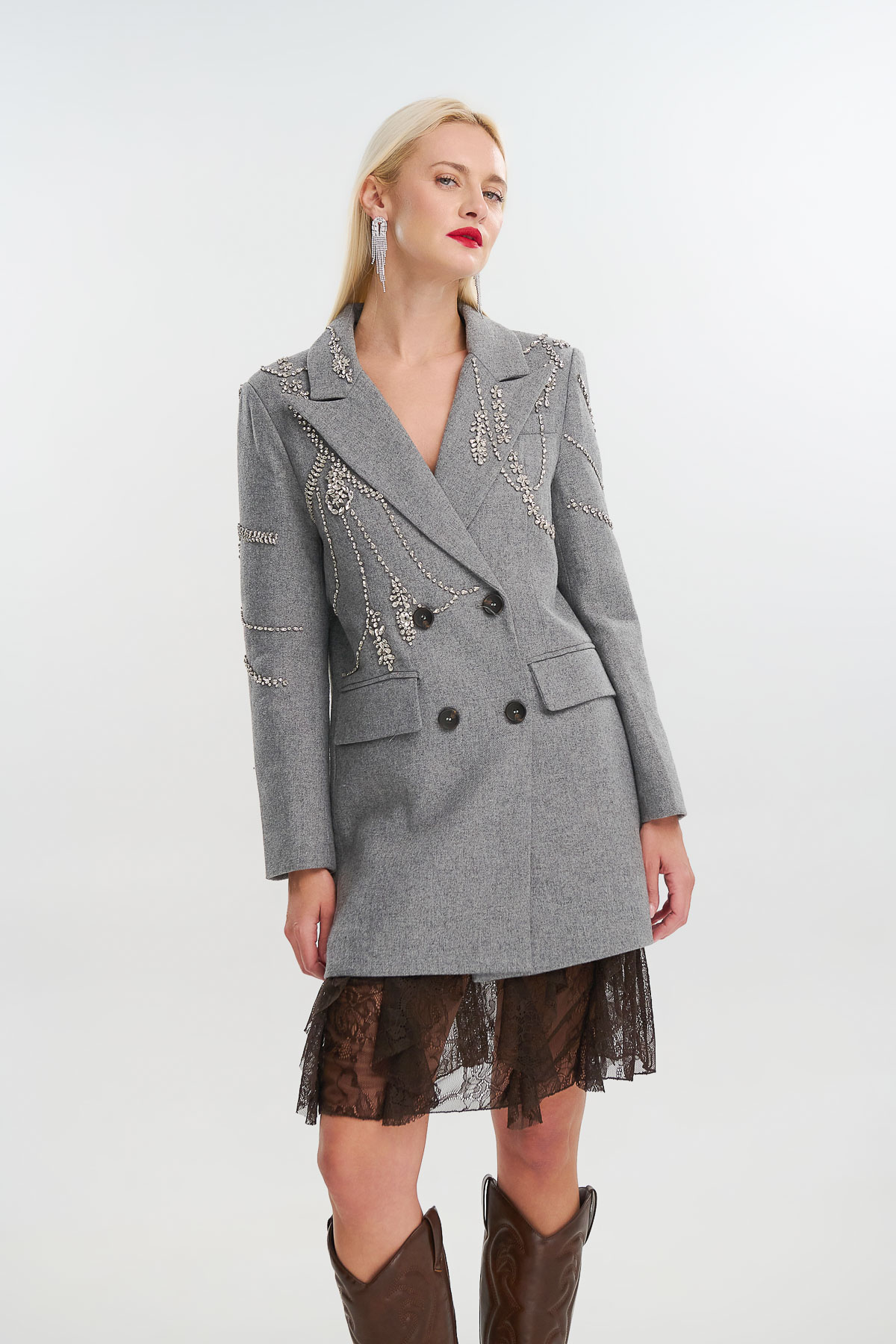 Σακάκι μάλλινο κέντημα κρύσταλλα