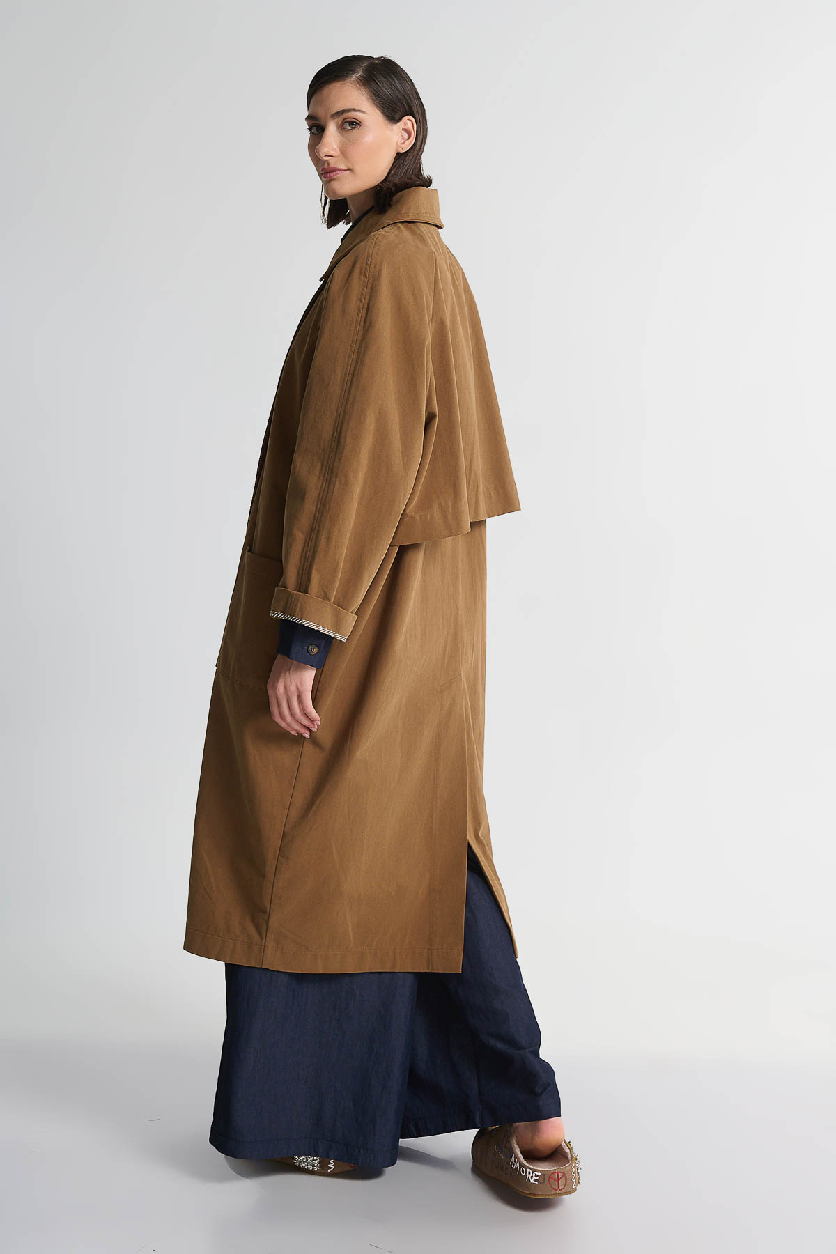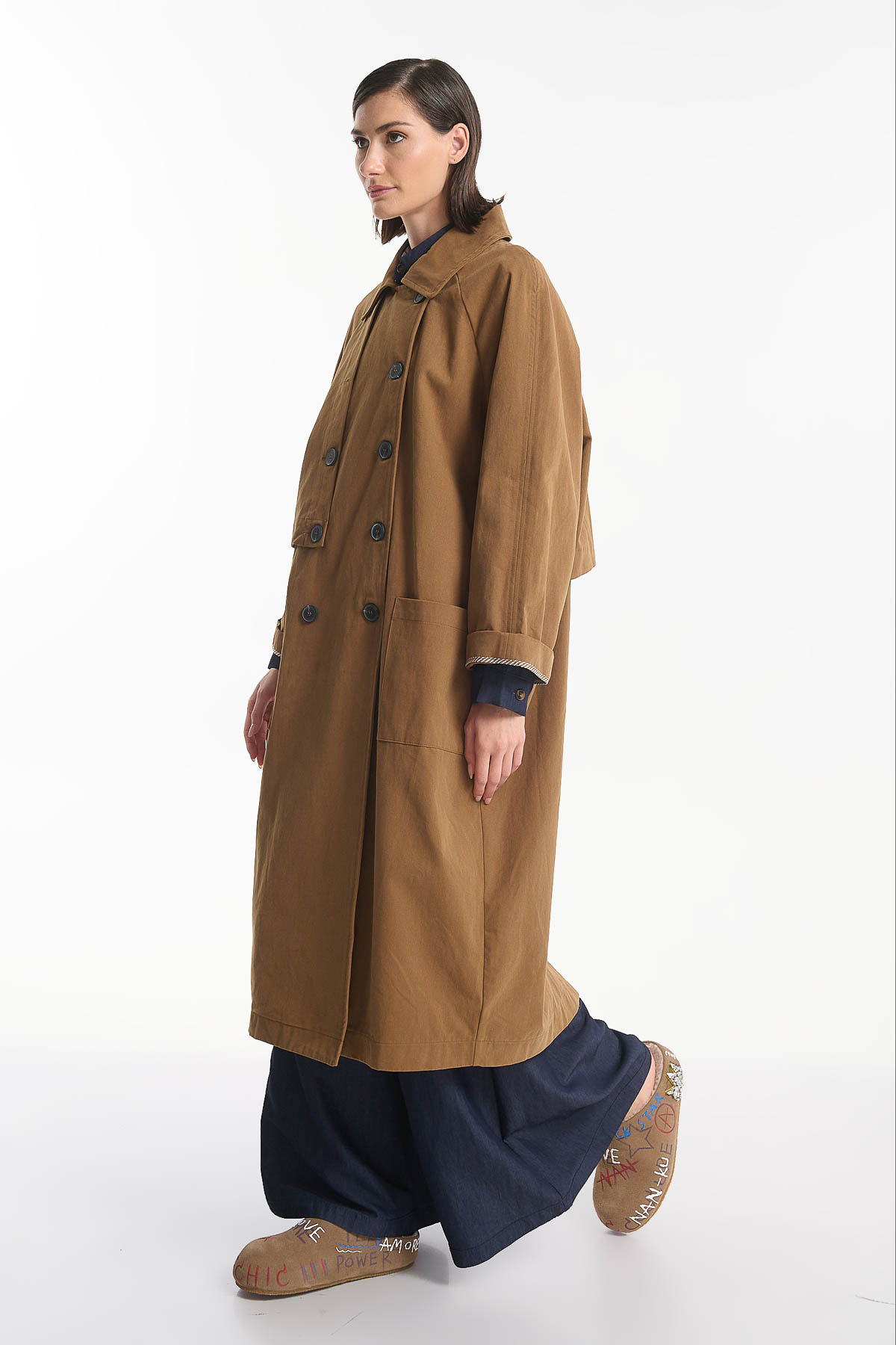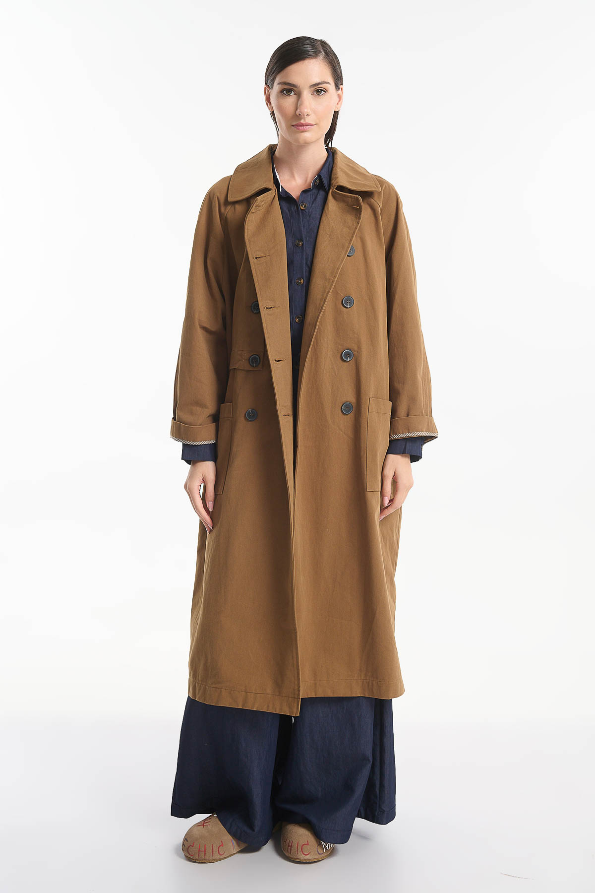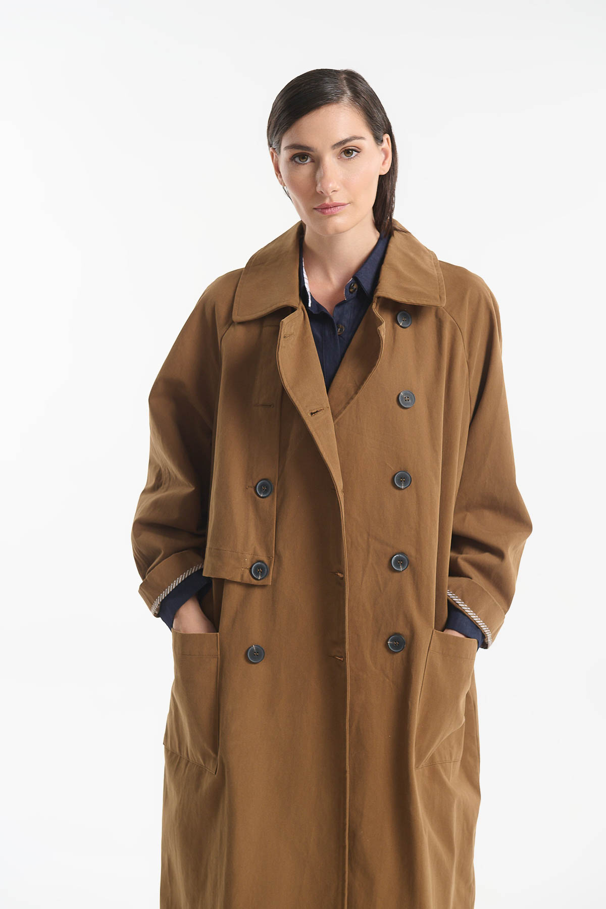 Trenchcoat long, ένα διαχρονικό κομμάτι που προσφέρει κομψότητα και άνεση. Με κλασικό σχεδιασμό, διπλό κούμπωμα και φαρδύ γιακά, αποτελεί ιδανική επιλογή για layering. Οι μεγάλες τσέπες προσθέτουν πρακτικότητα, ενώ το άνετο κόψιμο το καθιστά τέλειο για τις φθινοπωρινές και ανοιξιάτικες εμφανίσεις σας. Είναι 100% βαμβακερό με εξαιρετική ραφή και τελειώματα . Oversized γραμμή που καλύπτει απο XS έως XL . Μήκος : 125 cm .
