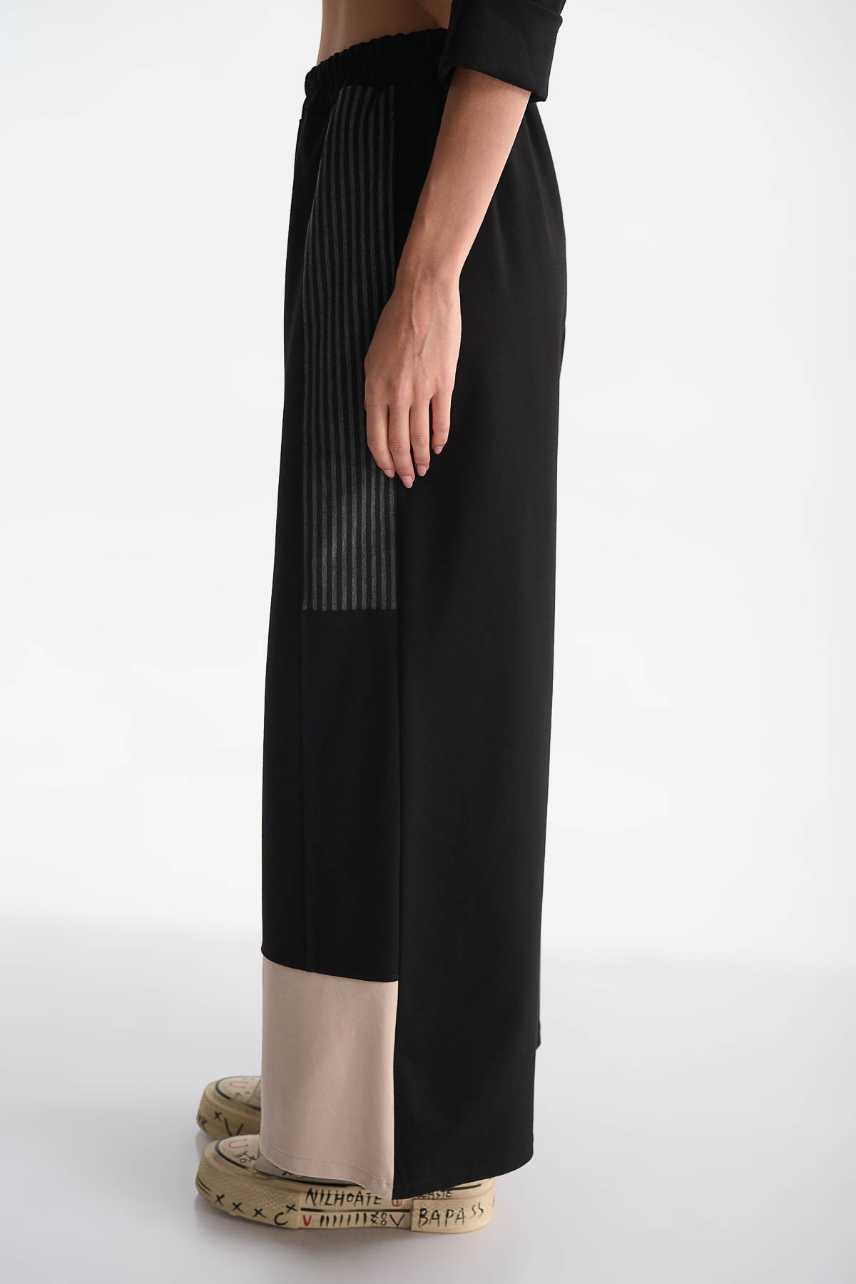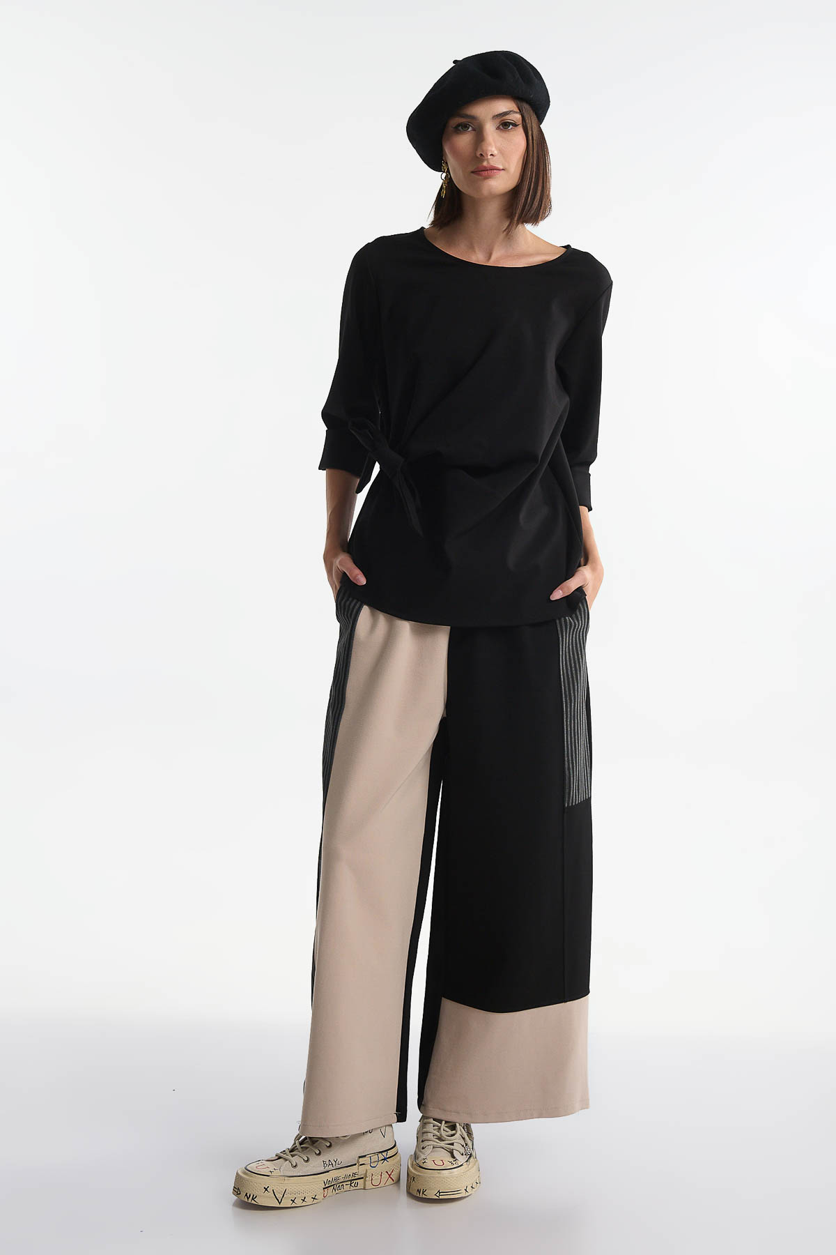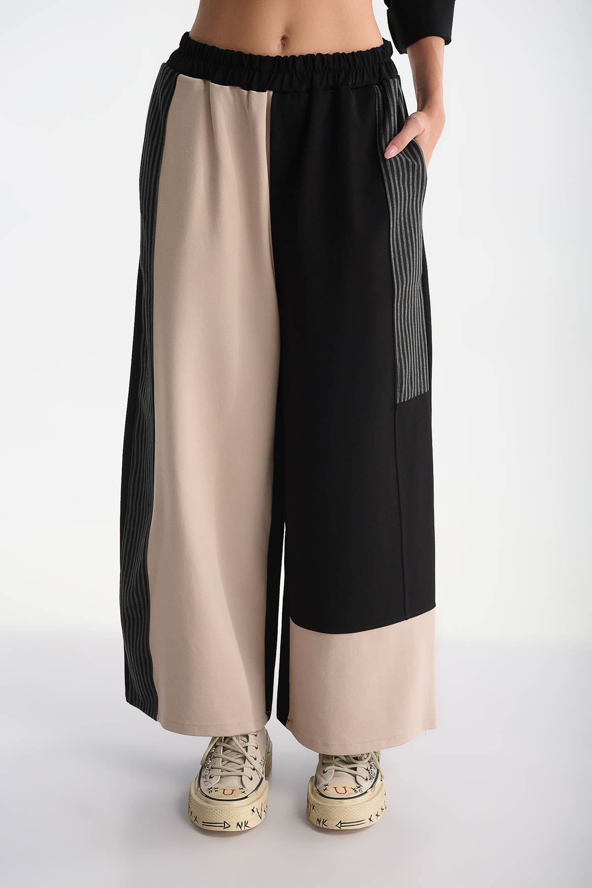 Μια άνετη και στιλάτη επιλογή για εντυπωσιακές εμφανίσεις. Διαθέτει μοναδικό δίχρωμο σχέδιο με ένθετες ρίγες στα πλαϊνά, προσθέτοντας κίνηση και χαρακτήρα στο look σας. Έχει φαρδιά γραμμή για άνεση, λάστιχο στη μέση για τέλεια εφαρμογή και είναι ιδανική για καθημερινές αλλά και πιο ιδιαίτερες εμφανίσεις. Συνδυάστε την με πουλόβερ ή πουκάμισο για ένα ολοκληρωμένο, μοντέρνο outfit. Σύνθεση : 65% Viscose – 30% Poliamide – 5% Elasthan.