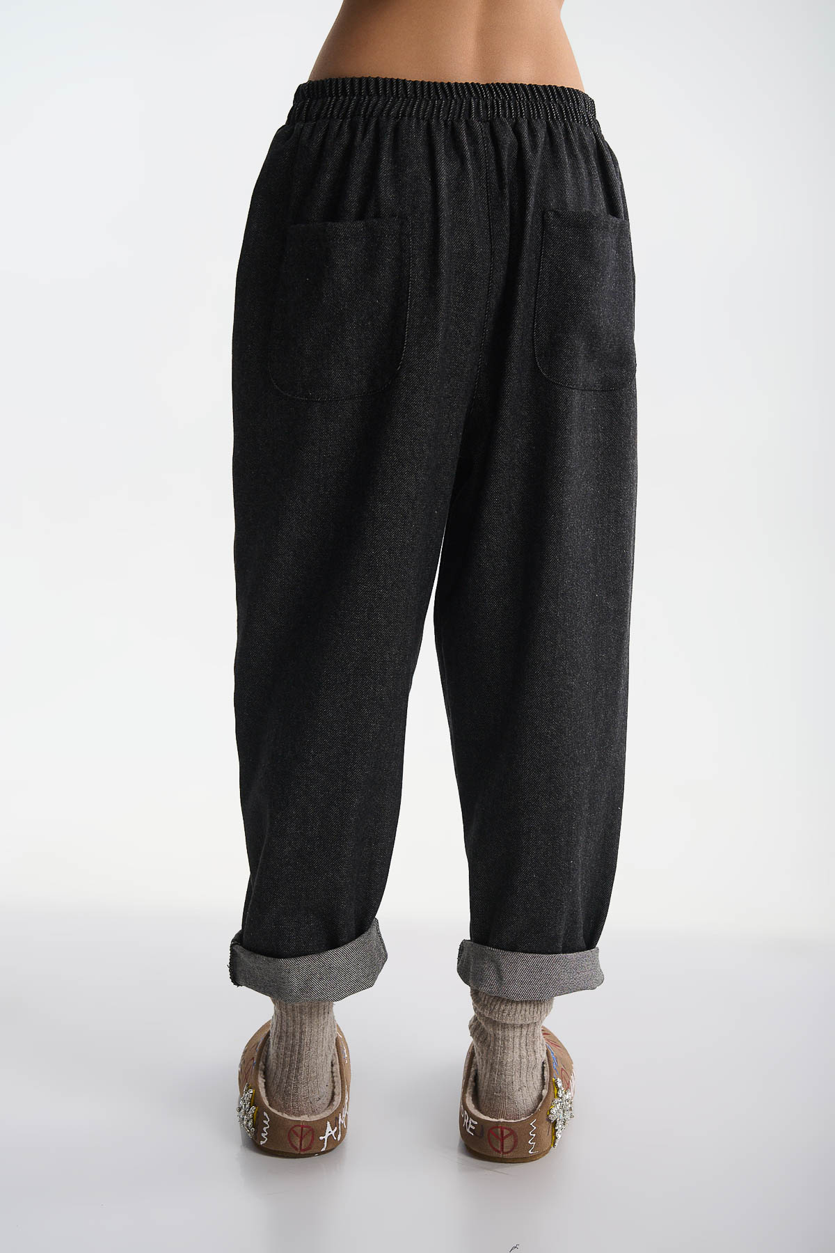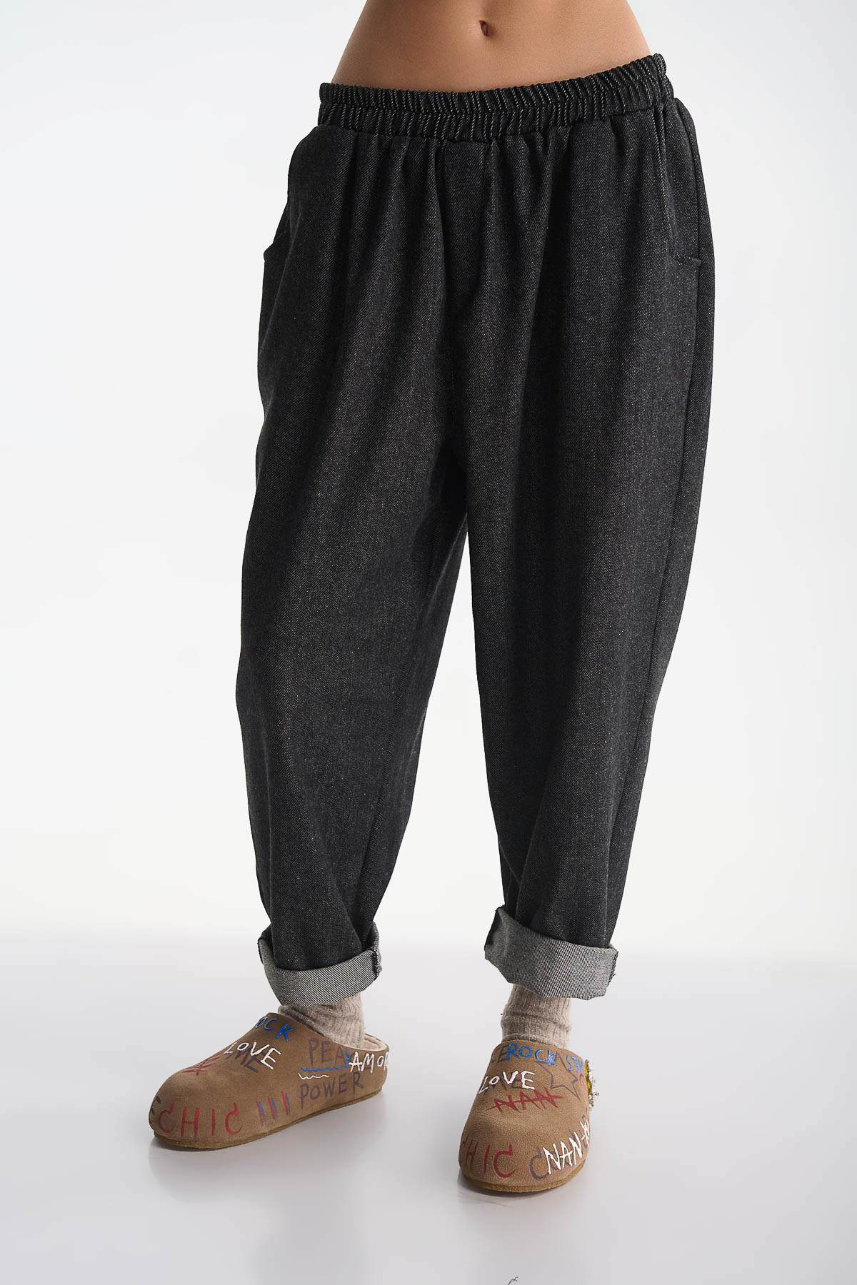 Παντελόνα με λάστιχο στη μέση και φαρδιά γραμμή για απόλυτη άνεση. Διαθέτει πρακτικές τσέπες στο πλάι και πίσω, ενώ το ρεβέρ δίνει ένα casual-chic ύφος. Ένα κομμάτι που συνδυάζεται εύκολα με πουλόβερ, πουκάμισα ή t-shirts για κομψές καθημερινές εμφανίσεις. Βαμβακερό ύφασμα που αναπνέει και δεν σε κουράζει στη καθημερινότητα. Καλύπτει απο XS έως 2XL . Μήκος : 98 cm . Σύνθεση : 68% Cotton – 40% Polyester .