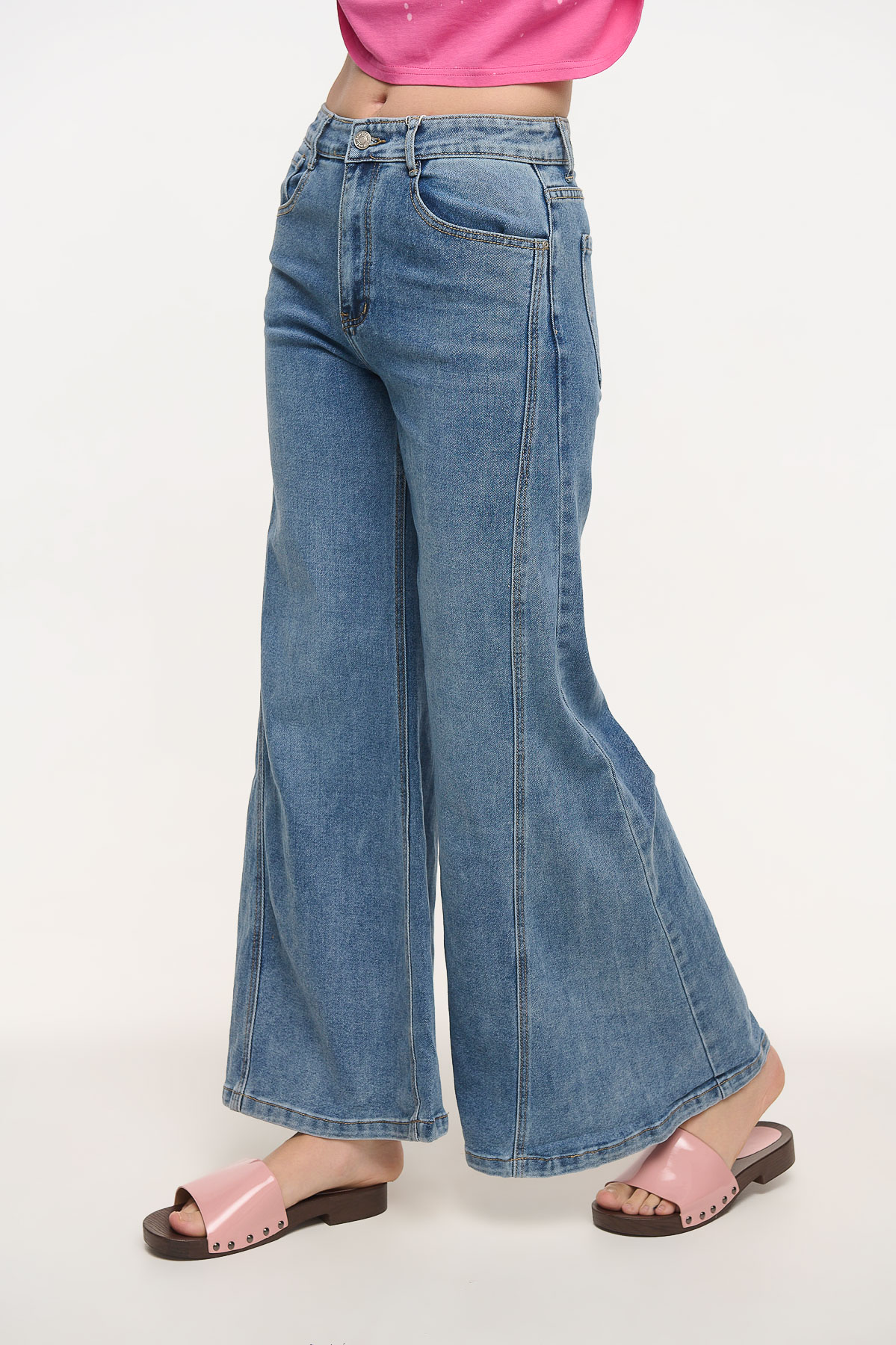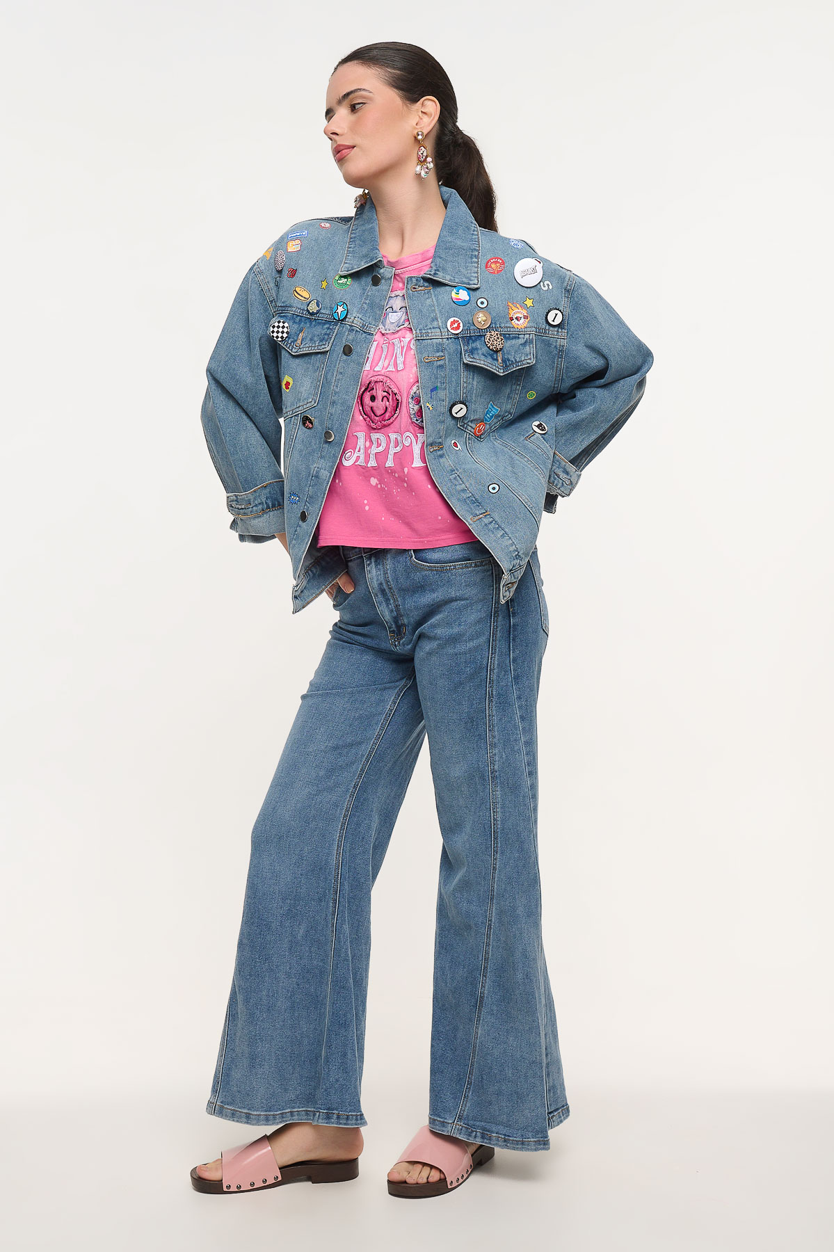 Denim παντελόνι σε καμπάνα γραμμή που χαρίζει στυλ και άνεση σε κάθε εμφάνιση. Το κλασικό πεντάτσεπο σχέδιο συνδυάζεται με ψηλόμεση εφαρμογή και φαρδύ τελείωμα, δημιουργώντας μια κομψή σιλουέτα που θυμίζει διαχρονικά retro looks. Ιδανικό για καθημερινά outfits, συνδυάζεται εύκολα με T-shirts, πουκάμισα ή jackets για μοντέρνο casual αποτέλεσμα. Το μοντέλο φοράει μέγεθος 40 με διαστάσεις 180 Ύψος 87 cm Στήθος 65 cm μέση 96 cm περιφέρεια.
