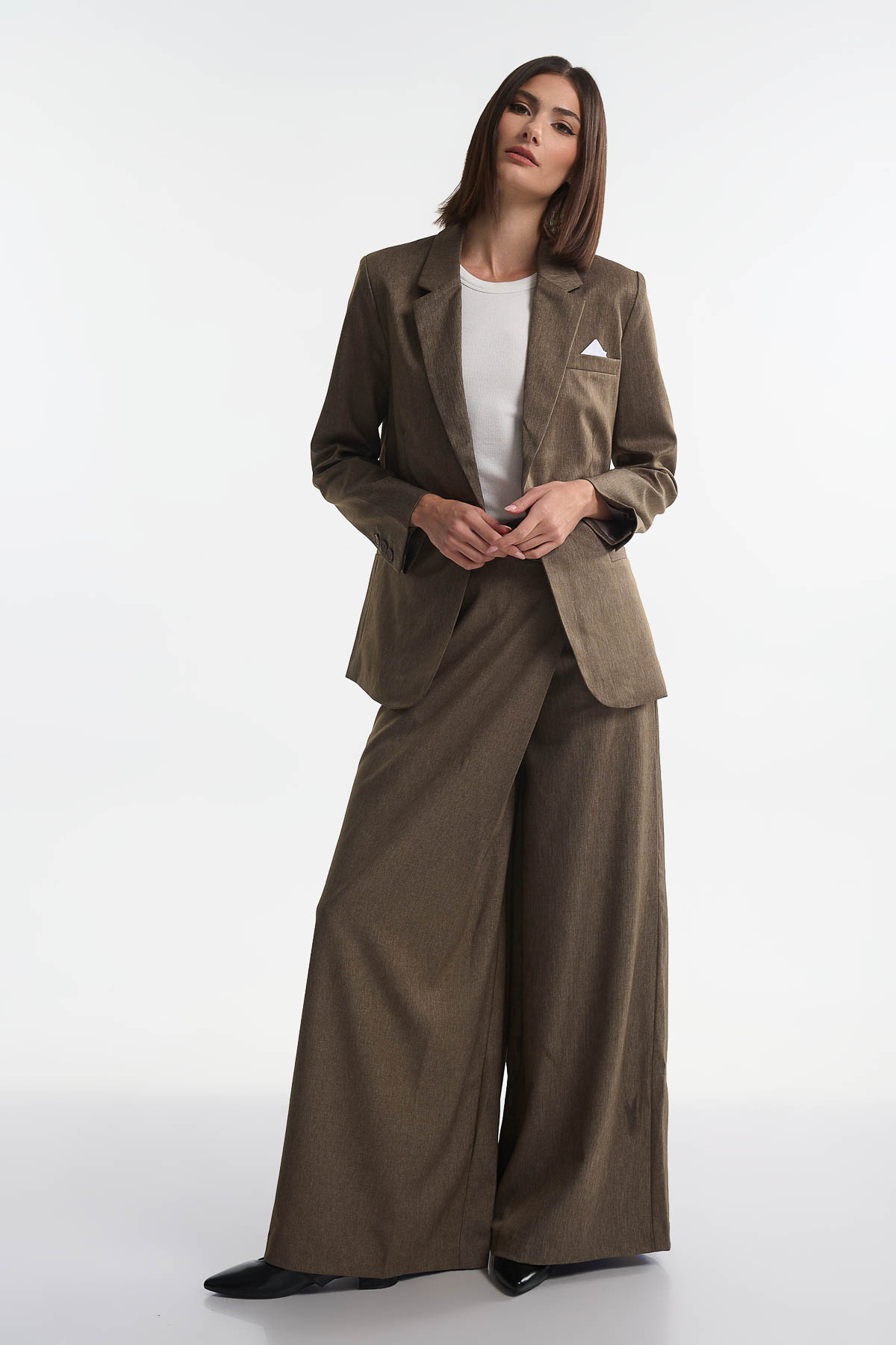 Το παντελόνι φάκελος είναι η επιτομή της κομψότητας και του σύγχρονου tailoring. Με ψηλόμεση εφαρμογή και ιδιαίτερο σχέδιο τύπου «φάκελου» στο μπροστινό μέρος, χαρίζει ένα μοναδικό twist στο κλασικό κοστούμι. Ράβεται με προσοχή στη λεπτομέρεια, με καθαρές ραφές και άψογο τελείωμα, ώστε να εξασφαλίζει άψογη εφαρμογή και διαχρονικό στυλ. Συνδυάζεται τέλεια με το σακάκι της ίδιας σειράς για ένα ολοκληρωμένο, chic look ή φοριέται μόνο του με πουκάμισο ή top για πιο relaxed εμφανίσεις. Ιδανικό για office looks, κοκτέιλ εμφανίσεις ή statement street style, το παντελόνι φάκελος θα γίνει το πιο κομψό κομμάτι της γκαρνταρόμπας σας. Το μοντέλο φοράει μέγεθος S . Σύνθεση : 67% Viscose – 30% Polyester – 3% Elasthan , Φόδρα : 100% Cotton.