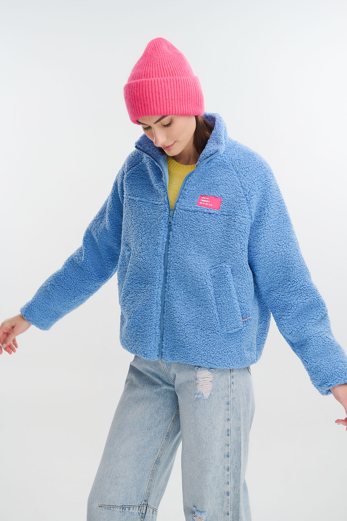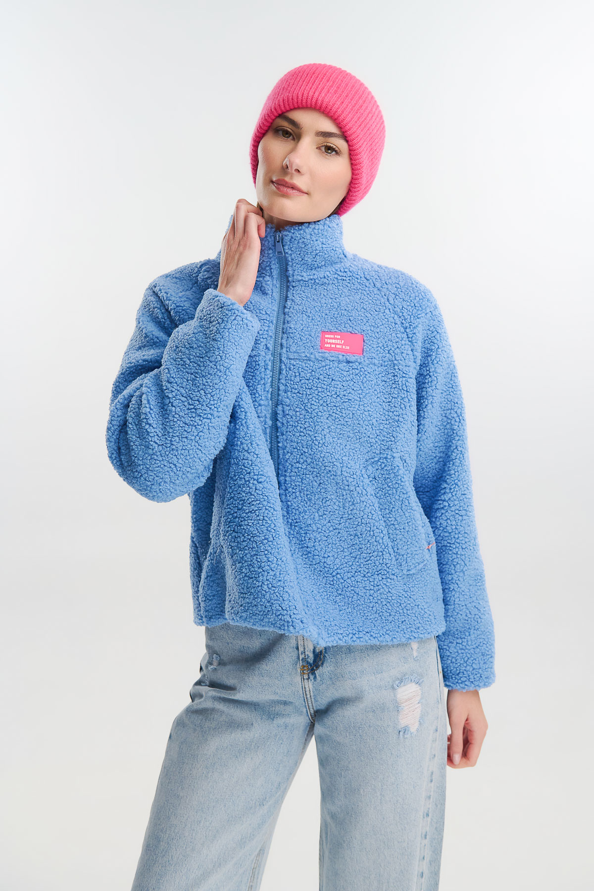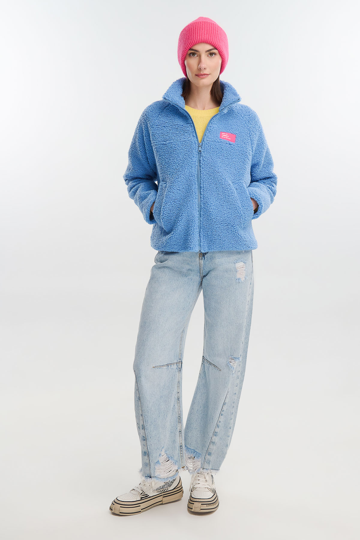 Ζεστό, cozy και γεμάτο χρώμα — αυτό το fluffy cardigan με φερμουάρ είναι η τέλεια επιλογή για τις κρύες μέρες του χειμώνα. Η απαλή, αφράτη υφή του προσφέρει αίσθηση άνεσης και θαλπωρής, ενώ το relaxed κόψιμο το καθιστά ιδανικό για layering πάνω από πλεκτά ή t-shirts.